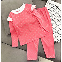 Đồ bộ cotton dài tay, Bộ cotton mặc nhà Bé Gái Cạp Cao ấm bụng chất Cotton Len Cho Bé 7-18kg
