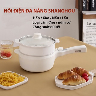 Nồi Lẩu Điện Mini Đa Năng Shiban Tay Dài Có Xửng Hấp Inox, Bếp Điện Mini Chống Dính