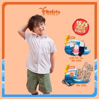 Áo sơ mi trắng bé trai Rabity tay ngắn có túi đồng phục phù hợp đi học đến trường lớp 91114