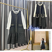HÀNG THIẾT KẾ- Váy Đầm Bầu Thu Đông Chất Liệu Dạ Sweet Cao Cấp Có Lót Phối Lụa Trắng Dành Cho Đi Tiệc, Công Sở Diện Tết Cực Đẹp