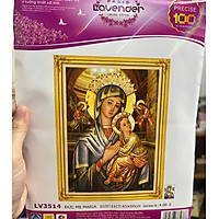Tranh thêu chữ thập Đức mẹ Maria bồng con lv3514, kích thước 45 x 60 cm