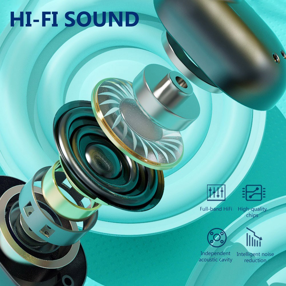 Specifications: There is a charging case that supports digital display, allowing you to carry the headset with you without worrying about charging. It uses Bluetooth 5.0 chip, which can bring you stereo music immediately and it has noise reduction function with digital charging box. You can adjust music playback or answer incoming calls with touch controls.