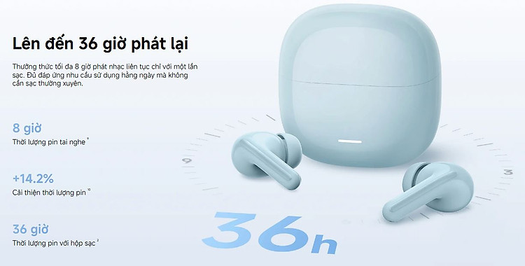 Thời lượng pin lên đến 36–40 giờ (kèm hộp sạc)