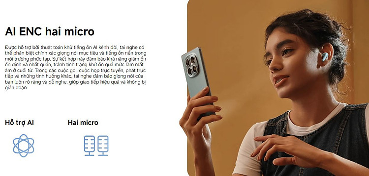 Micro tích hợp trên mỗi bên tai nghe hỗ trợ thu giọng nói rõ, giảm tạp âm môi trường ở mức cơ bản. Phù hợp cho: