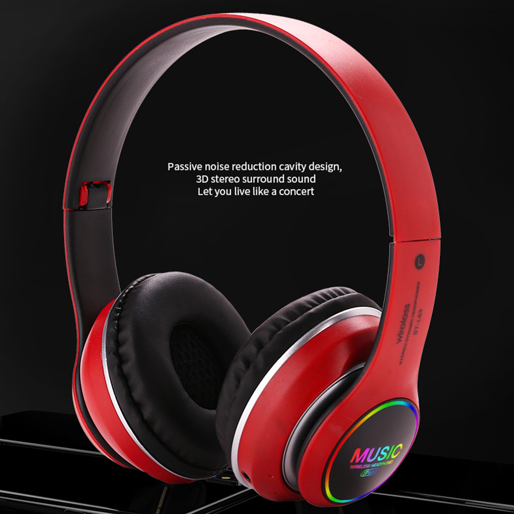 Specifications: This headset supports stereo music playback, calls, and also supports all Bluetooth-enabled audio devices such as mobile phones, laptops, tablets, computers, etc., and supports the use of TF cards. The 3.5mm audio jack make it easy to connect various devices. With binaural microphone design, you can answer or reject calls anytime, anywhere. Equipped with colorful flashing LED night light, this headphone fulls of sense of technology and creativity. The 40mm large speakers have ultra-clear sound quality and HIFI sound quality. Foldable design makes it easy to carry. With shocking game sound quality, you can feel more comfortable in the game.