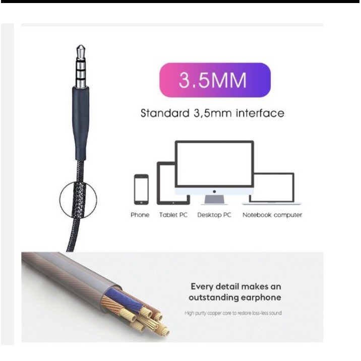 Giắc cắm 3,5 mm ba khúc mạ vàng, chỉ được sử dụng trong hầu hết các điện thoại di động, để đảm bảo rằng quá trình truyền tín hiệu mà không làm biến dạng chất lượng âm thanh, phích cắm tiện dụng hơn!