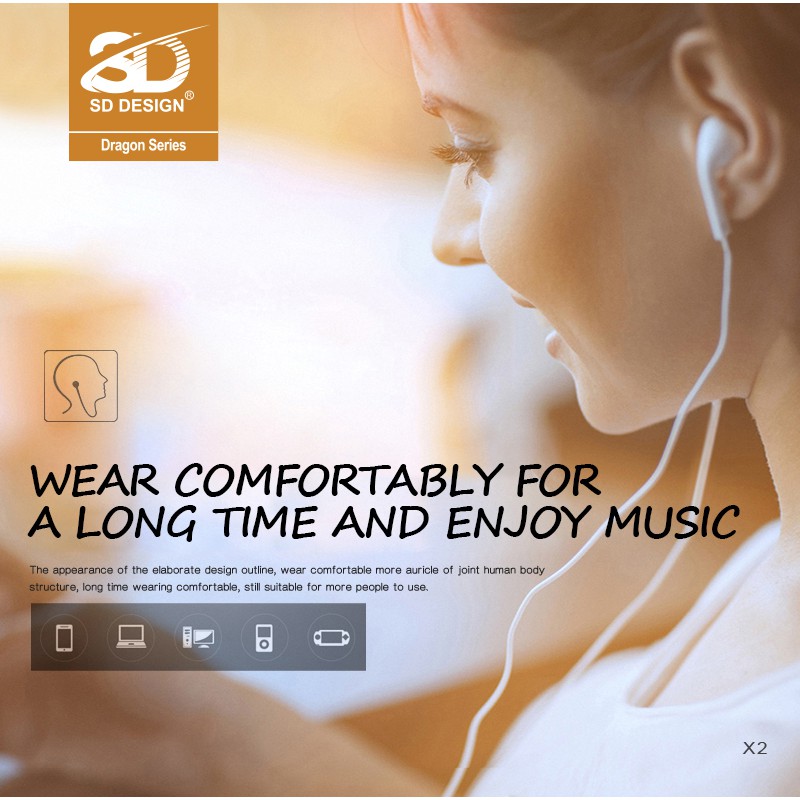 Thiết Bị Điện Tử > Tai Nghe > Tai nghe nhét tai || Tai nghe nhét tai chính hãng SD DESIGN X2 sử dụng cho các dòng iphone, samsung, oppo,.. jack cắm 3.5mm. bảo hành 1 đổi 1