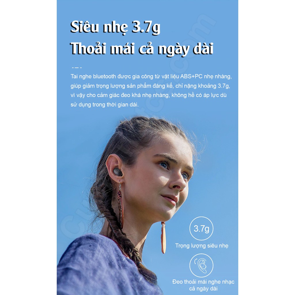 【Mô tả Sản phẩm】 ❤ Tuổi thọ pin 12 giờ với hộp sạc 310mAh ❤ Công nghệ BT 5.0 có độ trễ tín hiệu thấp hơn, tiêu thụ năng lượng thấp hơn, truyền nhanh và khả năng tương thích cao ❤ Cả hai tai nghe đều là tai nghe chính, mang lại trải nghiệm mới, chuyển đổi trơn tru giữa tai trái / tai phải / cả hai tai. Bạn có thể nghe một bên tai bằng cách đeo một bên bất kỳ. Đeo một cặp và ngay lập tức chuyển sang chế độ âm thanh nổi. ❤ Màng loa bằng nhựa polymer 7,2mm tạo ra âm trầm, tần số trung bình và cao, âm thanh rõ ràng và dễ chịu, kết hợp với công nghệ giảm tiếng ồn kỹ thuật số tốc độ cao DSP. ❤ Chỉ nhẹ 3,7g với chuẩn chống nước IPX5 chuyên dụng. ❤ Kích thước (với hộp đóng gói): 12 * 8 * 3 cm ❤ Chất liệu: Kim loại + nhựa ❤ Khối lượng (với hộp đóng gói): 0,06kg ❤ Nghe nhạc siêu lâu trong 4 giờ. ❤ Trợ lý giọng nói thông minh, tai nghe bên trái hoặc bên phải có thể được kích hoạt bằng cách nhấn ba lần. ❤ Hoạt động đơn giản và kết nối nhanh chóng. Lấy tai nghe ra khỏi hộp sạc để tự động hoàn tất kết nối (sau lần kết nối đầu tiên). ❤ Với 3 kích cỡ vỏ bọc tai nghe vừa vặn. bạn có thể tận hưởng các môn thể thao trong nhà / ngoài trời.
