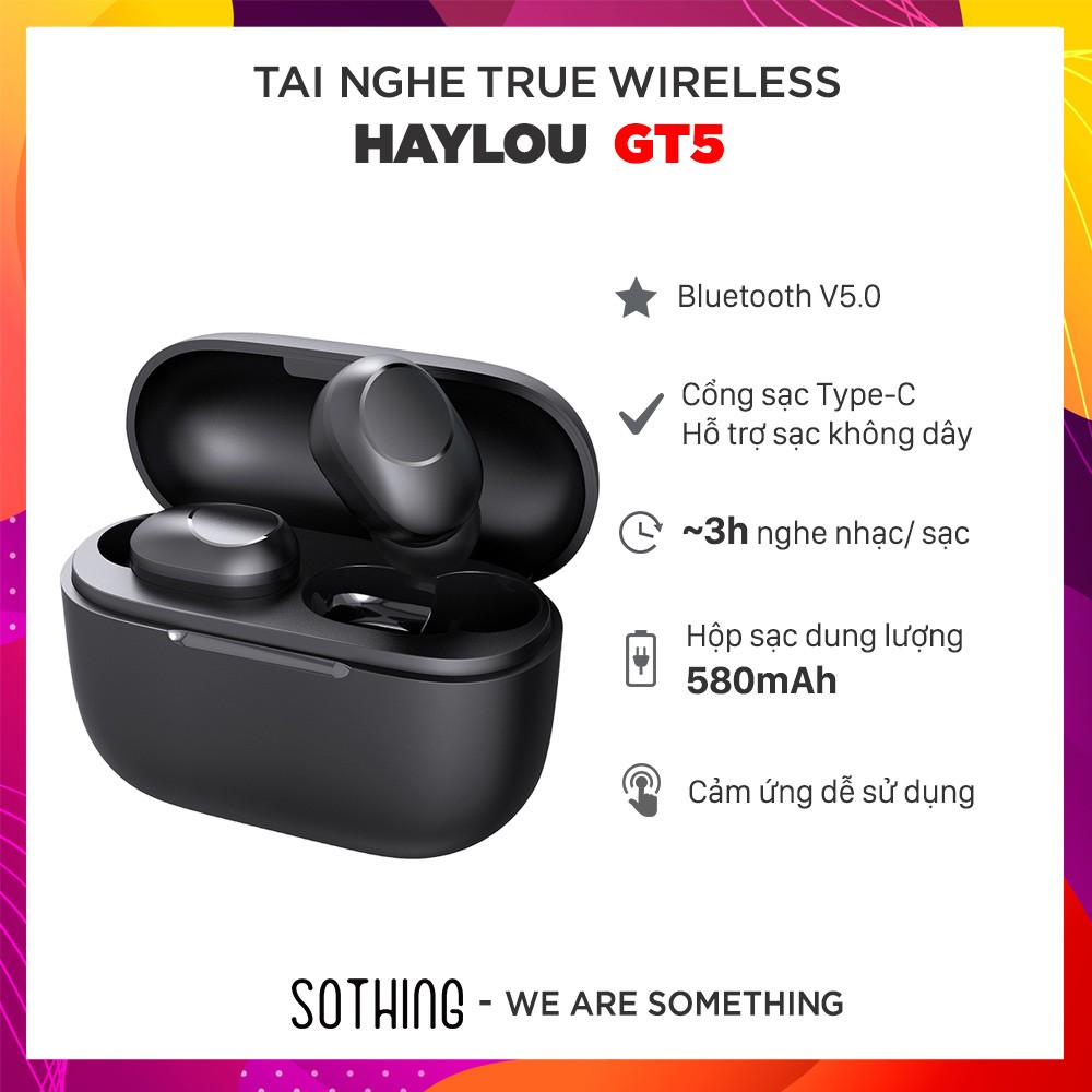 Giới thiệu [Bảo hành 6 tháng] Tai Nghe True Wireless HAYLOU GT5 Cổng Sạc Type C , Hỗ Trợ Sạc Không Dây - Hàng Chính Hãng