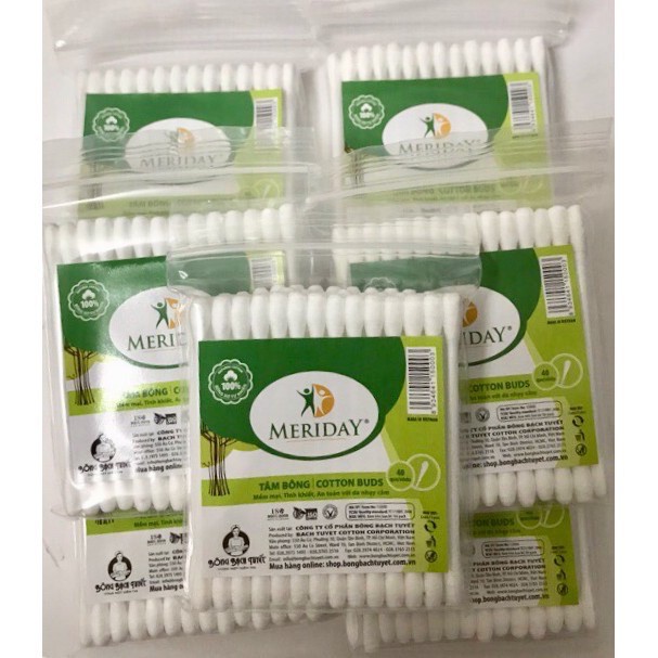 Giới thiệu Tăm Bông Meriday Bông Bạch Tuyết (40 Que) chính hãng