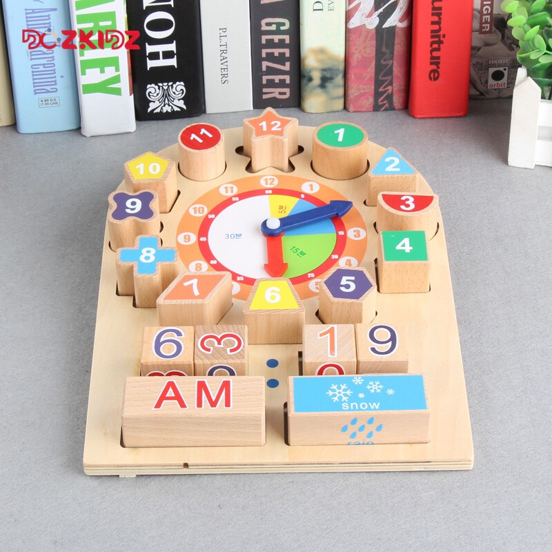 Đồ Chơi Gỗ Đồng Hồ Học Xem Giờ, Phân Biệt Hình Khối Và Màu Sắc - DOZKIDZ