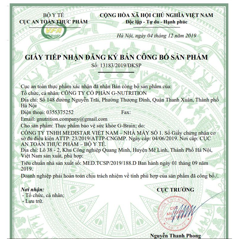 - Số giấy xác nhận của Bộ Y tế: 13183/2019/ĐKSP Sản phẩm này không phải là thuốc và không có tác dụng thay thế thuốc chữa bệnh