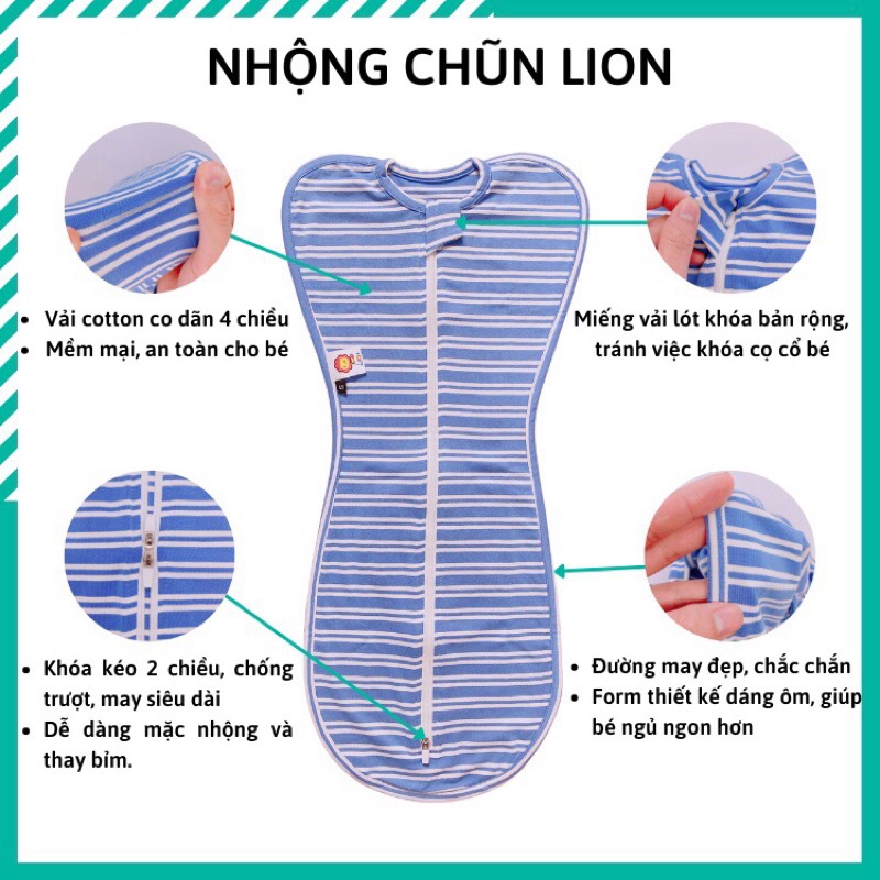 THÔNG TIN CHI TIẾT: Thương hiệu: Manny Đối tượng sử dụng: sơ sinh đến 6 tháng Chất liệu: vải cotton co giãn 4 chiều Màu sắc: Nhiều màu sắc MÔ TẢ SẢN PHẨM: Những ngày mới chào đời, bé có xu hướng lạ lẫm với môi trường xung quanh chính bởi vậy các mẹ thường dùng khăn quấn quanh cơ thể bé. Việc làm này vừa giữ ấm cho bé, vừa tạo cảm giác quen thuộc như trong bụng mẹ. Tuy nhiên, so với việc quấn khăn thì dùng quấn chũn tiện lợi hơn, thời trang hơn. Trên thị trường, quấn chũn, quấn nhộng vô cùng đa dạng về mẫu mã, chủng loại nhưng sản phẩm quấn chũn Manny vẫn nhận được sự tin tưởng, ưu ái từ những bà mẹ bỉm sữa vì giá thành vừa phải, chất liệu an toàn, đem đến hiệu quả giấc ngủ cho bé. Lợi ích của quấn chũn Manny Giúp bé ngủ sâu hơn, ngon hơn – Quấn chũn Manny thiết kế ôm ấp cơ thể non nớt của bé, tạo cho bé cảm giác an tâm như trong bụng mẹ. – Theo kết quả nghiên cứu, việc mặc quấn chũn khi ngủ sẽ hạn chế việc bé giật mình thức giấc. Nhờ đó, bé ngủ sâu hơn, ngon hơn, không bện hơi mẹ và hình thành thói quen tự lập trong giấc ngủ. Lợi ích về mặt sức khỏe – Quấn chũn Manny hỗ trợ giữ ấm cơ thể bé, tránh những tác nhân xấu từ môi trường xung quanh. – Thiết kế của quấn chũn bao bọc tay bé, ngăn chặn tình trạng bé cào lên da mặt trong lúc ngủ. Bố mẹ yên tâm và nhàn hơn Đặc điểm nổi bật của quấn chũn Manny: – Quấn chũn Manny làm từ vải cotton co giãn 4 chiều, thấm hút mồ hôi đem đến cảm giác mềm mại, dễ chịu cho bé. – Quấn chũn Manny có nhiều loại màu sắc, phù hợp cho cả bé trai, bé gái. Màu nhuộm vải an toàn, không gây kích ứng da bé. – Có khóa kéo trên thân áo, thuận tiện trong quá trình cởi ra – mặc vào. Không có những chi tiết rườm rà, thừa thãi. Dùng quấn chũn Manny đúng cách: – Đối tượng thích hợp dùng quấn chũn Manny là sơ sinh đến 2.5 tháng tuổi. – Dùng quấn chũn đúng thời điểm: chỉ nên dùng khi bé ngủ hoặc đi ra ngoài. – Dùng quấn chũn trong điều kiện nhiệt độ phòng trong khoảng 26 – 27 độ C. – Mặc quấn chũn rộng rãi để tạo cảm giác thông thoáng cho bé. Có 2 size theo trọng lượng thông thường cho bé S: 3-6.5kg M: 6-10kg