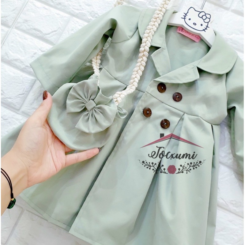 🌬 Áo khoác dáng váy tặng kèm túi siêu xinh, chất kaki gió nhẹ tênh, xịn sò đẹp long lanh, màu xanh bạc hà cực hiếm. 😘 🌳 Chất Liệu: kaki, vải mềm mịn lắm ạ 👧 Size cho bé từ 5-30kg Size Cân nặng 1 5-7kg 2 7-9kg 3 10-13kg 4 13-16kg 5 17-19kg 7 20-24kg 9 25-30kg