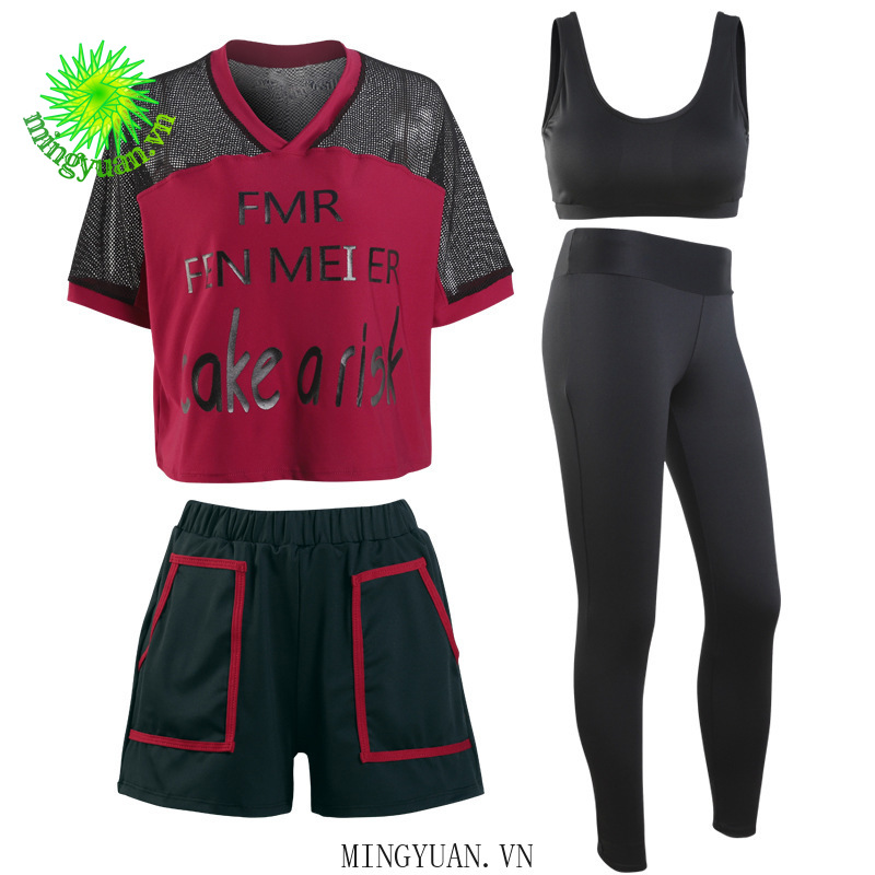 Giới thiệu đồ tập gym Gồm Bra + Áo Thun Tay Ngắn + Quần Short Cho Nữ