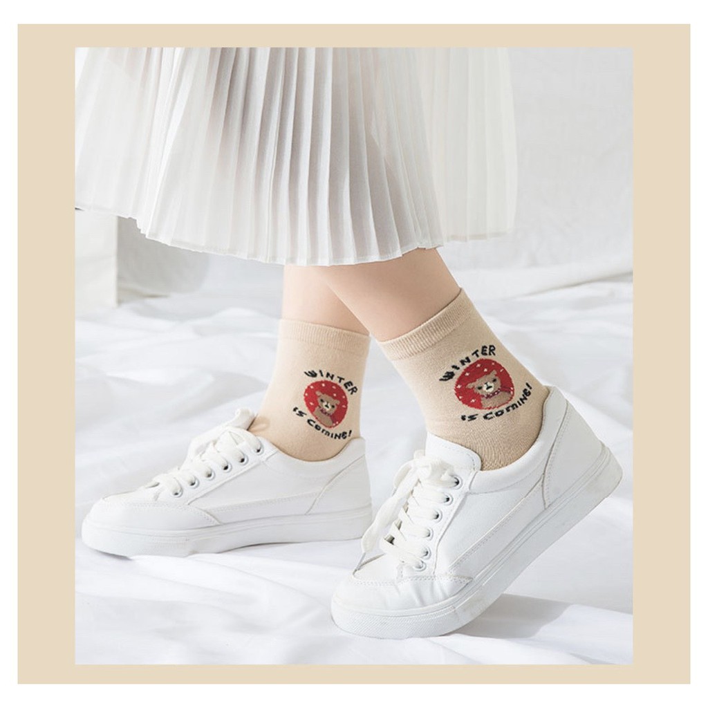 Giới thiệu Tất nữ dễ thương thêu gấu vintage TN110
