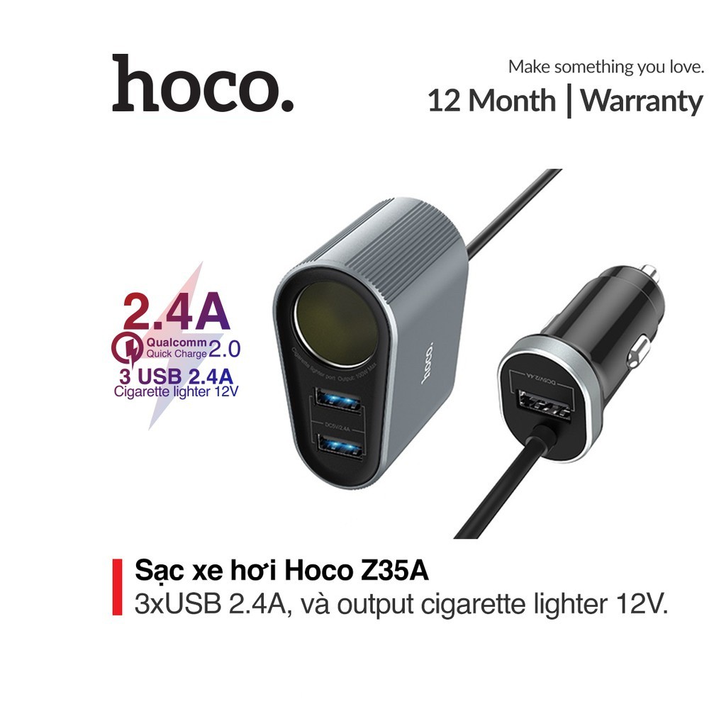 Ô tô > Phụ tùng ô tô > Thiết bị điện tử > Đèn || Tẩu sạc điện thoại xe hơi 2.4A Hoco Z35A vật liệu PC chống cháy tích hợp đèn Led và 3 đầu ra Usb