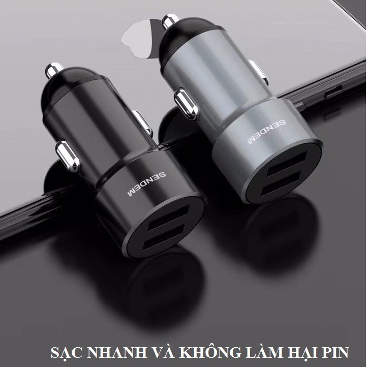 Điện Thoại & Phụ Kiện > Pin, Cáp & Bộ sạc > Cốc sạc || Tẩu sạc ô tô ❤️FREESHIP❤️ SENDEM D7 kim loại cao cấp 2 cổng USB sạc nhanh - Hàng CHÍNH HÃNG - Bảo hành 1 năm