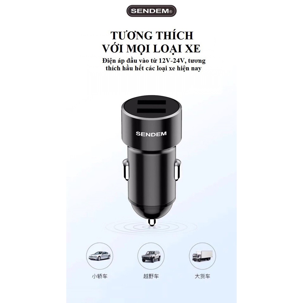 Giới thiệu Tẩu sạc ô tô ❤️FREESHIP❤️ SENDEM D7 kim loại cao cấp 2 cổng USB sạc nhanh - Hàng CHÍNH HÃNG - Bảo hành 1 năm