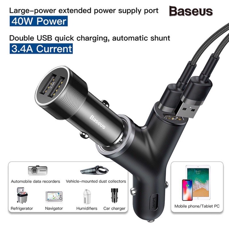Giới thiệu ✔Tẩu Sạc Ô Tô Mở Rộng 3-in-1 Dùng Cho Xe Hơi Baseus Y Type Dual USB (40W, 3.4A Fast Charge, Intelligent Car charger)