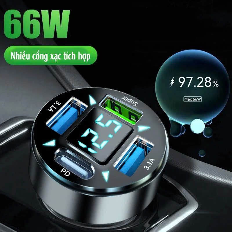 Tên sản phẩm - Sạc nhanh PD66W Màn hình kỹ thuật số 3.1A sạc ô tô bốn trong một