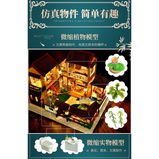 Giới thiệu (Tặng mica,keo sữa,đèn)Mô hình tự lắp ráp đồ chơi gỗ Diy nhà búp bê diy doll house biệt thự cổ trang siêu to TB20