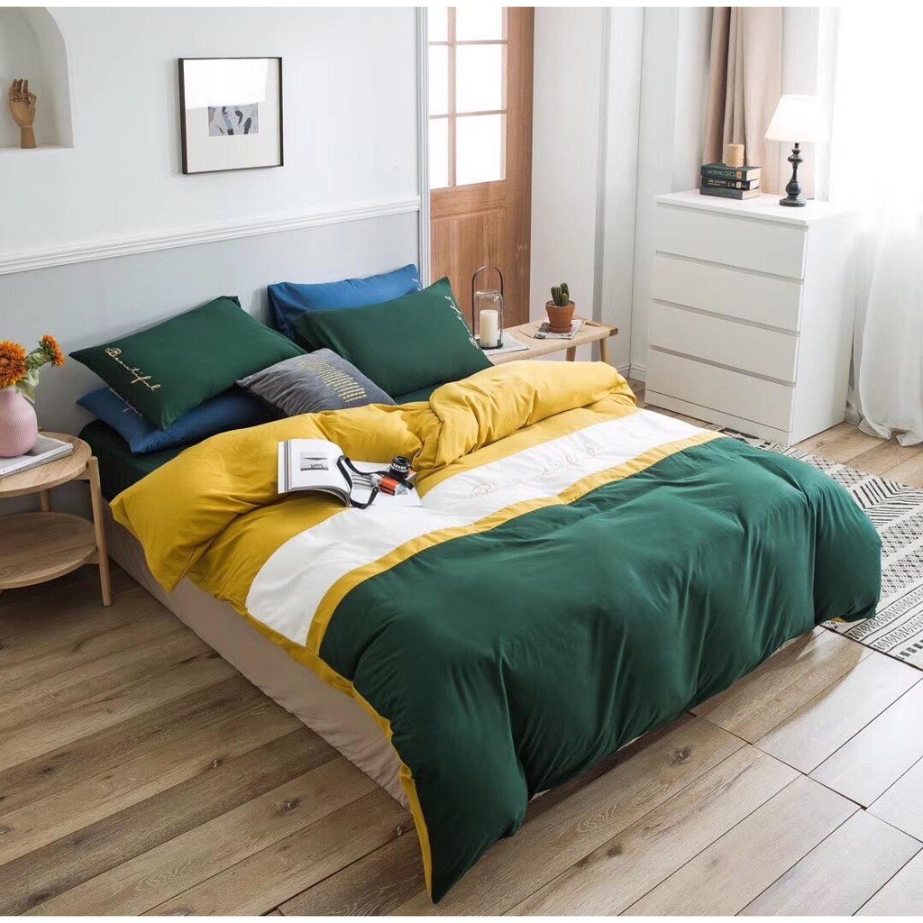 Giới thiệu [TC PHỐI ] Combo 4 Món Chăn/Mền Ga Gối Cotton Cao Cấp Phối Màu XANH VÀNG