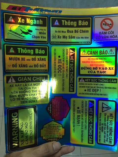 Tem logo dan xe 7 màu 50k /1 tấm gồm tất cả các cảnh báo trong 1 tấm. Xe nghành sirius, xe nghành dream, xe ngành wave. Vui lòng gửi tấm bạn muốn lấy vào phần liên hệ để bên shop gửi đúng mẫu bạn cần. Nhận làm tem xe các thể loại zin, chế. Nhận thiết kế theo sở thích. Tem do đội ngũ designer vẽ , có thể chỉnh sửa , đổi màu tùy theo sở thích của mỗi người. Ngoài ra còn rất nhiều tem khác, các ae có thể liên hệ hoặc inbox Fb mũ bảo hiểm thể thao hay Ngọc David để bít thêm thông tin chi tiết Ae cần tem j thì inbox nha. Thiết kế in ấn tem các loại, tem 3 lớp kg phai màu và tem chất liệu candy, nhôm xướt, phản quang... Lh 01287205974 Thanks