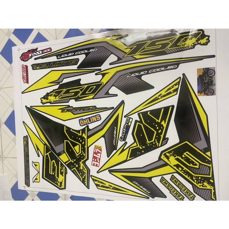 Tem rời xe exciter 150 chữ ex lớn cham vàng xám dán cho xe đen. tem đổi màu dán cho xe màu khác được hết. Thông tin sản phẩm: 1 bộ dán cho 1 xe ( 2 bên xe) chất liệu: decal shinlung cao cấp Đặc tính: decal shinlung cao cấp chống nước siêu tốt, mực in của japan cho đổ phủ sắc nét. tem không phai màu theo thời gian. hướng dẫn 1. Lau chùi, làm sạch bề mặt nhựa xe cần dán tem. 2. Tách lớp decal và dán vào bề mặt sản phẩm. 3. Dán vào lấy tay hay miếng gác cao su vuốt cho tem phẳng không bị nổ bong bóng 4. Sử dụng hột quẹt lửa hay máy sấy hơ sơ qua tem để tăng độ bán dính, giữ sản phẩm tốt hơn theo thời gian lâu dài 5. Khi dán bóc tới đâu dán lên xe chỗ phù hợp 6. Tuyệt đối không bóc lớp keo nilon phía trên mặt decal . 7. Sau khi dán xong không nên rửa xe liền ma phải chờ 3-5 ngày sau Cần j thì inbox shop dùm. Gửi hình tem logo bạn muốn lấy Nhận làm tem xe các thể loại zin, chế. Nhận thiết kế theo sở thích. Tem do đội ngũ designer vẽ , có thể chỉnh sửa , đổi màu tùy theo sở thích của mỗi người. Ngoài ra còn rất nhiều tem khác, các ae có thể liên hệ hoặc inbox Fb mũ bảo hiểm thể thao (Search 0787205974) hay Ngọc David để bít thêm thông tin chi tiết Ae cần tem j thì inbox nha. Thiết kế in ấn tem các loại, tem 3 lớp kg phai màu và tem chất liệu candy, nhôm xướt, phản quang... Lh 0787205974 Thanks