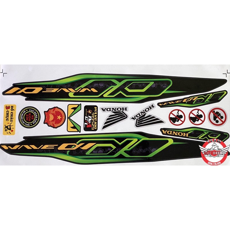 Tem rời Wave 100cc, 50cc Xanh Lá Đen