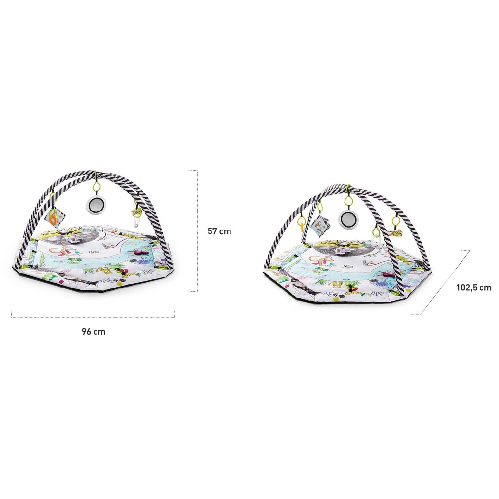 - Bộ sản phẩm gồm 7 món đồ chơi vừa có thiết kế dễ thương vừa giúp bé phát triển kỹ năng: gương, sách vải, ngậm nứa, vòng lắc, ngậm nứa hình chiếc lá, chú hổ phát ra âm thanh, chú voi có chuông dễ thương - Thảm có các mối nối để gắn các đồ chơi tùy theo nhu cầu và sở thích của bé - Đệm êm ái cho bé thoải mái khi ngồi - Cung treo đồ chơi có các đầu nối đa năng giúp bạn có thể sắp xếp đồ chơi ở bất kỳ vị trí nào bé thích - Cung treo có thiết kế màu trắng đen độc đáo kích thích thị giác của bé - 20 quả bóng màu sắc dịu nhẹ, không gây kích ứng mắt bé, tạo cho bé không gian như chơi trong bể bóng ở khu vui chơi - Chất lượng cao, tạo cảm giác thoải mái cho bé - 6 bức tường hình ảnh đầy màu sắc với những câu chuyện khác nhau. Với chức năng Playpen, các cạnh tường được nâng lên và gắn chặt vào nhau, khuyến khích bé nâng đầu và cổ, tăng vận động cơ lưng khi bé nằm úp và di chuyển để nhìn các hình ảnh vui nhộn. Ngoài ra nó còn ngăn không cho bóng bị rơi ra ngoài - Kích thích xúc giác, thị giác và thính giác của bé - Phát triển kỹ năng vận động - Dễ dàng gấp gọn và vận chuyển - Được làm bằng chất liệu chất lượng cao, an toàn cho sức khỏe của bé - Đạt tiêu chuẩn an toàn Châu Âu EN 71-1, EN 71-2, EN 71-3