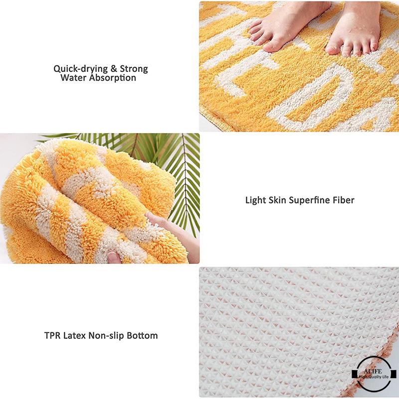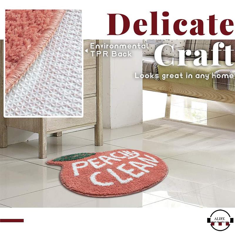 Features: 1.(1) SUPER SOFT SURFACE: The 100% polyester microfiber material surface, soft, thicker, and when you walk out of the bathroom, will feel its soft. 2.(2) NONSLIP BACKING: With TPR nonslip backing material which waterproof and durable, hard to broke and stick to the wet floor. 3.(3) MACHINE WASHABLE: No need to call carpet & rug cleaning service. Both hand and machine washable available. Different from other company's mat, our mat can be washed and dried so many times. 4.(4) WATER ABSORBENT: Have a strong water-absorbent ability, can absorb water quickly, keep your feet and your bathroom floor dry and clean. Specification: -Material: Flocking + TPR -Size: peach: 55*63cm, lemon: 46*76cm