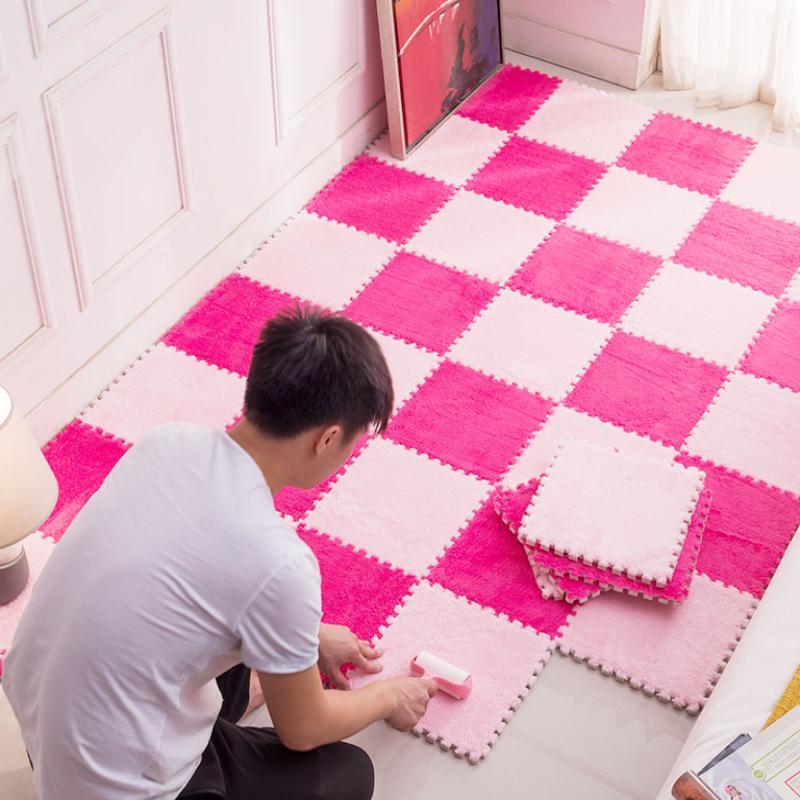Stitching Velvet Floor Mat Suede Carpet Puzzle Foam Mat EVA Floor Mat Crawling Mat Product category: splicing mat Color: beige, light pink, lake blue, light camel, dark gray, purple, fruit green, rose red Applicable scenarios: living room, bedroom, study room, outdoor, dining room, balcony, children's room, commercial place Features: 1. Soundproofness, shockproofness, waterproofness and heat preservation; 2. The laying is simple, smooth, and the surface has specific anti-slip properties; 3. The product is odorless and can be used without washing and cooling, providing safe and safe use for babies; 4. The ultra-thick product thickness prevents the baby from falling and being injured when sitting unsteadily while playing on it. It can also be used as a gymnastics mat indoors, which is convenient for storage. Material: EVA plastic foam Size: 30*30*1cm Quantity: 1