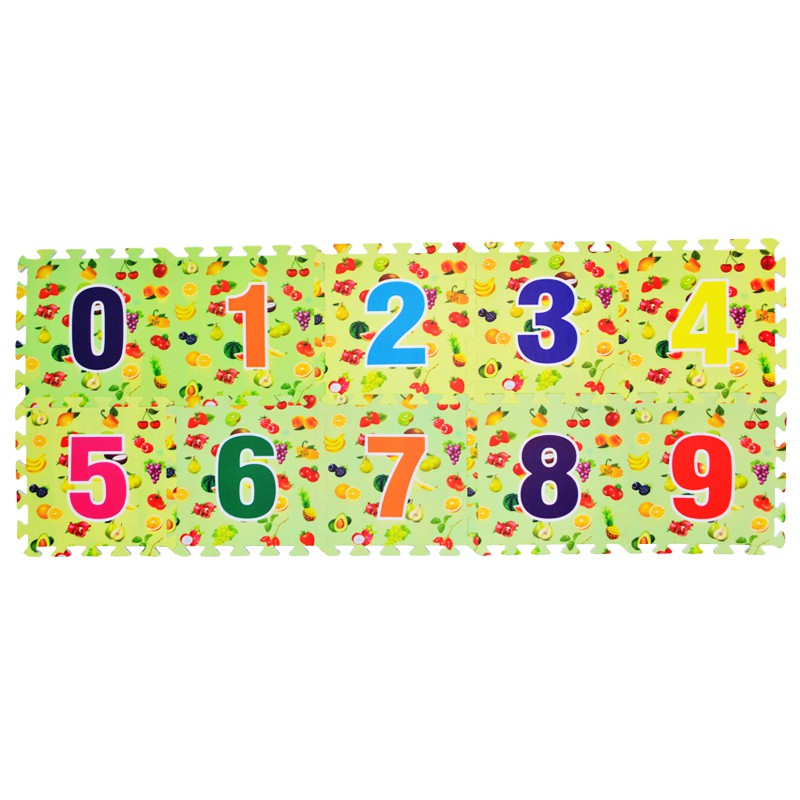 - Bộ sản phẩm gồm 36 miếng tương ứng với 26 chữ cái từ A-Z và 10 chữ số từ 0-9, kích thước 30 x 30cm - Chất liệu : làm từ bọt biển (foam) mềm
