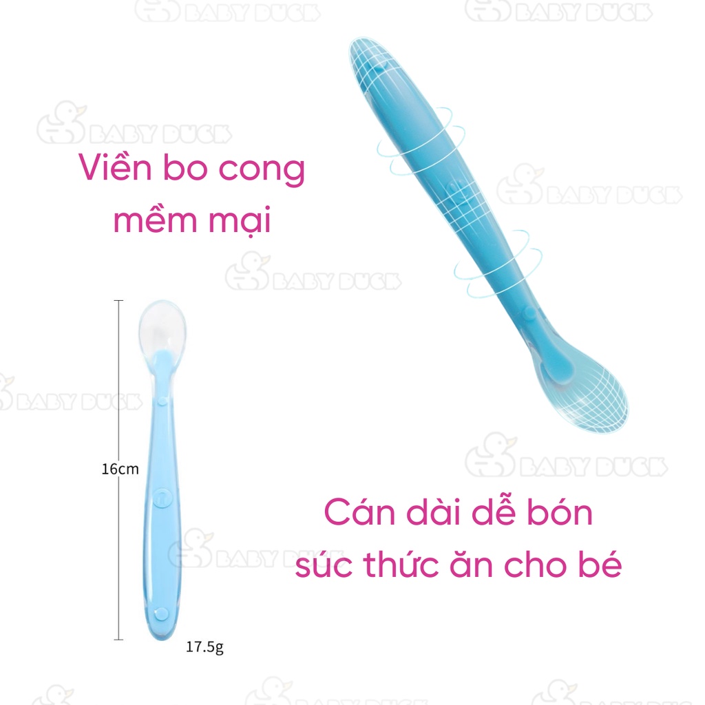 Giới thiệu Thìa ăn dặm silicon siêu mềm cho bé tặng hộp, thìa bón bột (đầu thìa trong suốt)