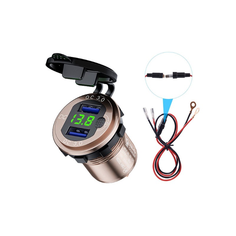 The usb charger socket has two 18W / 3A QC3.0 fast charging ports, provides 4x faster charging speed to compatible devices. Backward compatible with QC 2.0 &1.0 and deliver the fastest possible charge to all non-quick charge devices. Multi-purposes: supply power for cellphone, tablet PC, GPS and other USB-devices An integrated usb charger socket with a LED voltage display that can show the voltage status of car battery in time. Very useful for car, boat, bike, SUV, ATV, RV car, campers and motorcycles, etc. With IP66 waterproof grade, have good waterproof and dust prevention effect,with on off switch,easy to use and save energy. Wide Application: cars, motorcycles, ATVs, SUVs, UTVs, Boats, Marine,bus,and more.