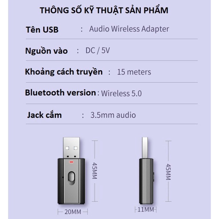 Giới thiệu Thiết bị thu phát âm thanh Usb bluetooth 5.0 âm thanh đa chức năng jack cắm 3.5mm cho loa, ô tô, máy tính...có mic