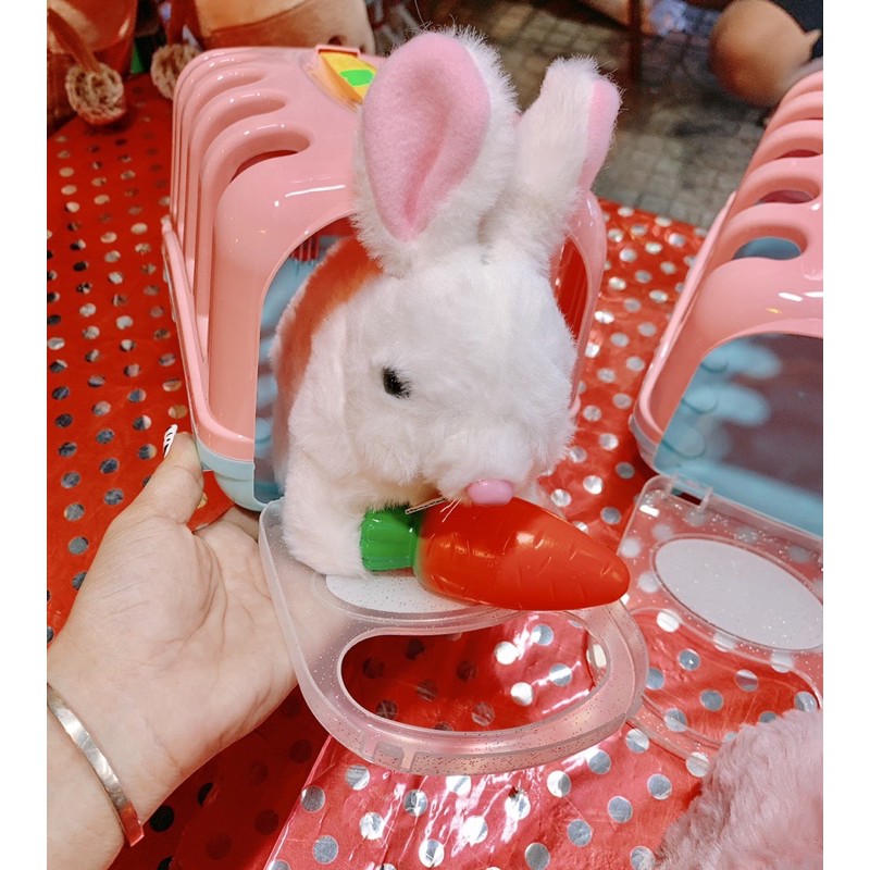 Đồ Chơi > Búp bê & Đồ chơi nhồi bông > Thú nhồi bông || Thỏ pin biết đi, có âm thanh, kèm chuồng thỏ cute