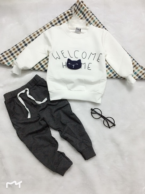 Thời trang trẻ em & trẻ sơ sinh > Quần áo bé trai > Com lê & đồ bộ || Bộ đồ thu đông cho bé welcome home Bo059 (có bảng size ở hình cuối)