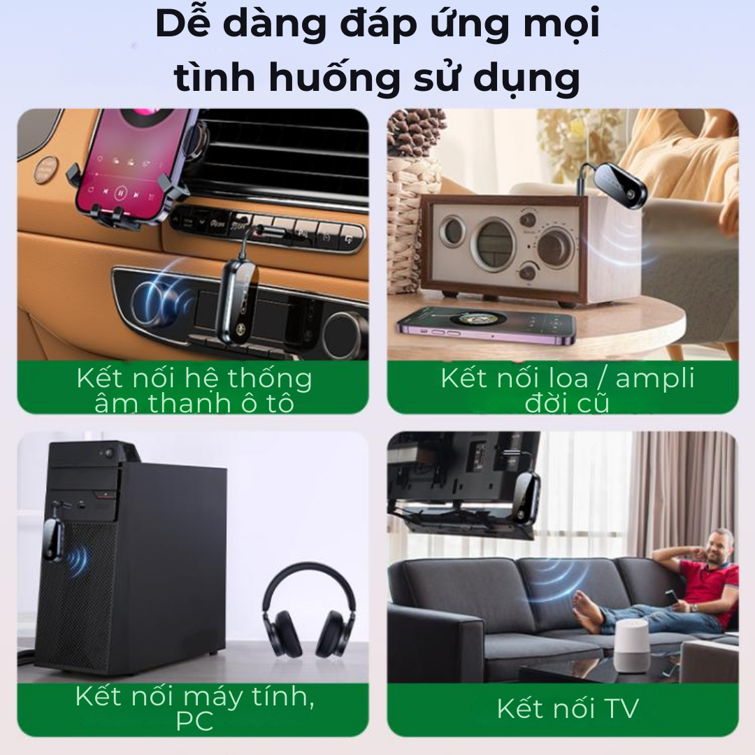 Tuổi thọ cao và đèn báo pin: Bộ phát Bluetooth cung cấp thời gian sử dụng lên đến 13,5 giờ cho mỗi lần sạc đầy, với phạm vi kết nối hơn mười mét và thời gian sạc nhanh 2 giờ.