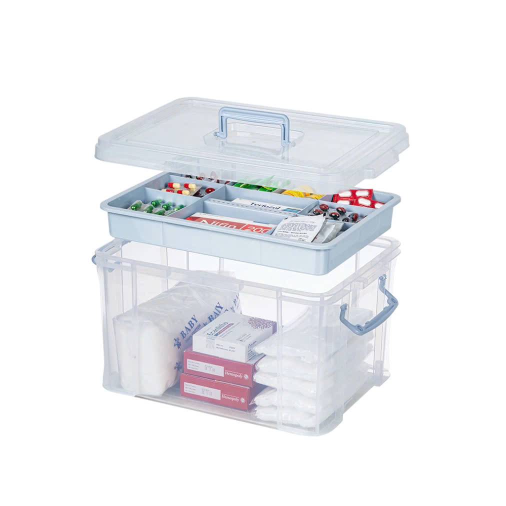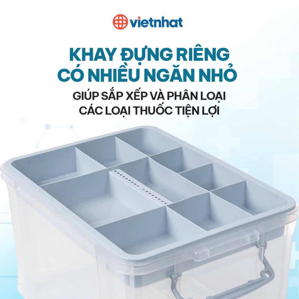 Hộp đựng đồ y tế là sản phẩm tiện lợi không thể thiếu trong gia đình giúp bạn lưu trữ và bảo quản thuốc, đồ dùng y tế, vật dụng cá nhân,... một cách gọn gàng và khoa học. Hộp có nắp đậy kín khí, khóa cài chắc chắn, quai xách phía trên nắp giúp di chuyển thuận tiện cùng lòng hộp sâu rộng, thoải mái chứa đồ dùng. Đặc biệt, thiết kế khay đựng riêng biệt với nhiều ngăn nhỏ để cả nhà dễ dàng sắp xếp và phân loại thuốc hay sử dụng. Sản phẩm hứa hẹn là “trợ thủ đắc lực góp phần bảo vệ sức khỏe cho cả gia đình".