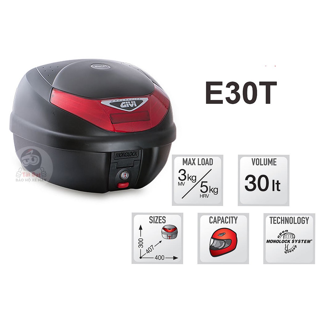 Mô tô, xe máy > Phụ kiện xe máy > Thùng chứa đồ || Thùng GIVI E30T tặng kèm đế MP60N
