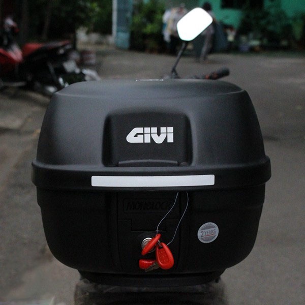 Thùng Xe Máy Givi với thiết kế theo phong cách Ý, với nhiều tính năng và ưu điểm vượt trội là lựa trọn phù hợp cho người sử dụng xe máy tại thị trường Việt Nam. Thùng Givi E26N được làm từ nhựa nguyên chất 100% bền đẹp theo thời gian, không lo vỡ bể khi sử dụng. Thùng có khóa đóng mở tiện lợi và an toàn, đặc biệt thùng không vào nước đi mưa hay rửa xe không lo ướt đồ bên trong thùng. Sản phẩm Thùng Sau Xe Máy Givi được bảo hành chính hãng Givi thời gian bảo hành lên tới 2 năm.