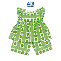 Bộ quần áo lửng bé gái họa tiết Hoa kẻ xanh lá cotton - AICDBGOSN721 - AIN Closet