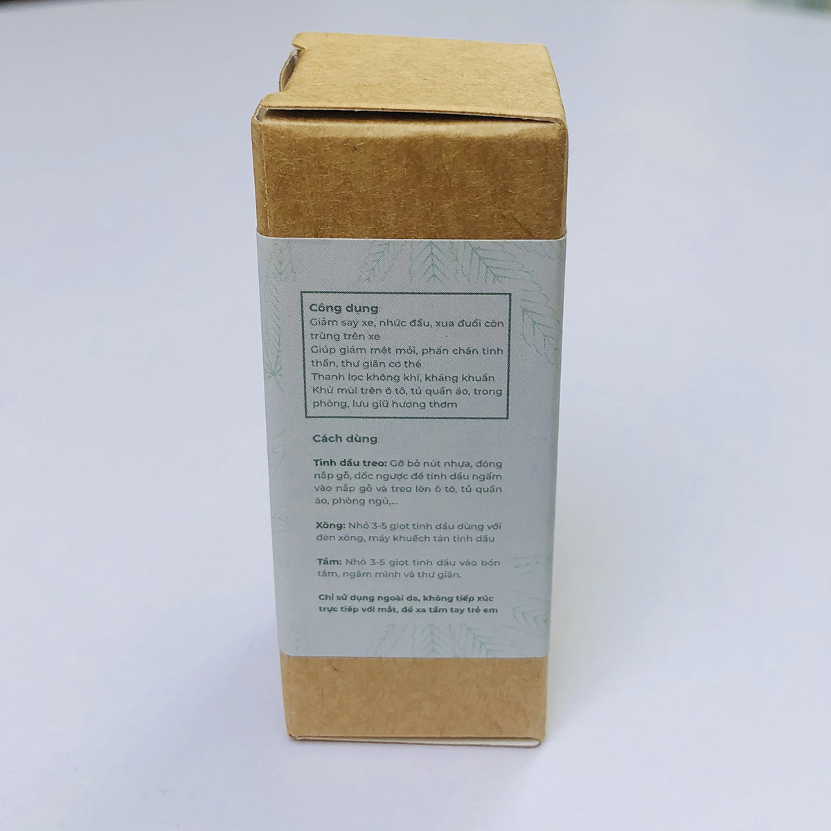 | Hướng dẫn sử dụng | Bước 1: Xoáy mở nắp gỗBước 2: Tháo nắp nhựa trắngBước 3: Dốc ngược lọ tinh dầu để tinh dầu 2-5 giây.Bước 4: Đóng nắp gỗBước 5: Treo tinh dầu lên xe ô tô, tủ quần áo, tủ bếp, phòng ngủ,... |