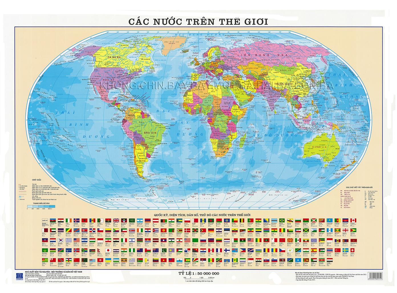 - Thế giới tiếng Việt A1 54x 75cm, tỷ lệ 1 : 56.000.000 xuất bản tháng 1 năm 2018 (mới nhất đến thời điểm hiện tại)