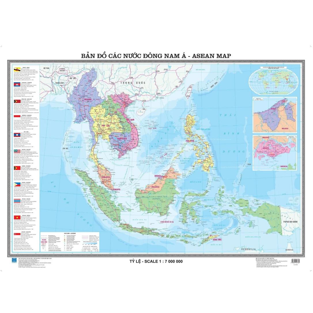 - Các nước Asean (các nước Đông Nam Á) khổ A0, tỷ lệ 1 : 100.000 xuất bản tháng 7 năm 2025 (mới nhất đến thời điểm hiện tại)