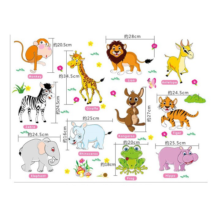 Con vật đáng yêu của bé - Có chữ Tiếng Anh Decal dán tường cho bé Đề can dán tường cho bé Decan dán tường cho bé Decal động vật, con vật cho bé yêu Decal dán tường trẻ em Decal dán tường trang trí lớp học Tranh dán tường cho bé