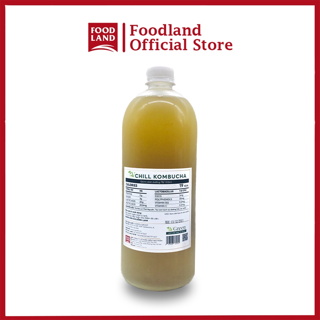 Giới thiệu Trà Bất Tử Chill Kombucha TÁO 1L - Trà hoa quả lên men con giống scoby - Foodland