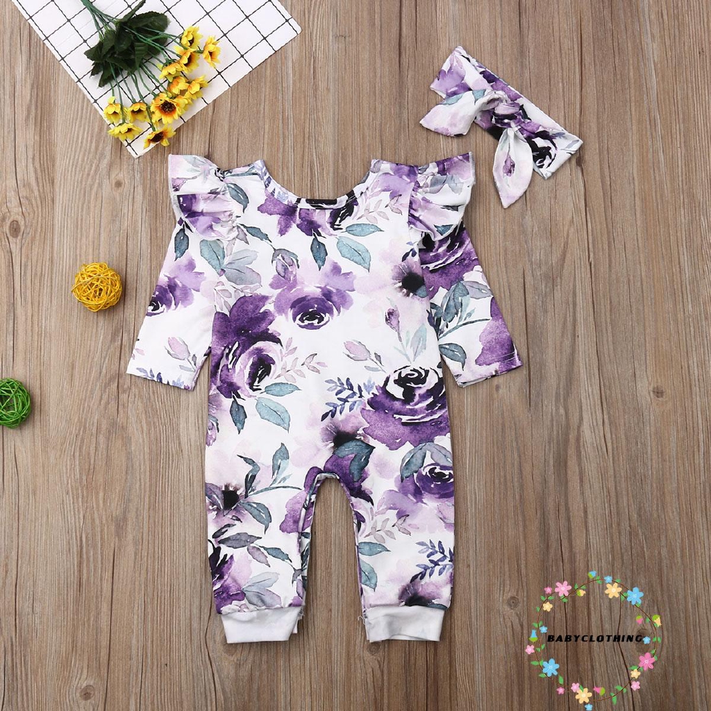 Thời Trang Trẻ Em > Bé gái | 3 tháng-4 tuổi > Áo || Bộ trang phục Jumpsuit Bodysuit dài tay đi kèm băng đô cài tóc xinh xắn dành cho bé